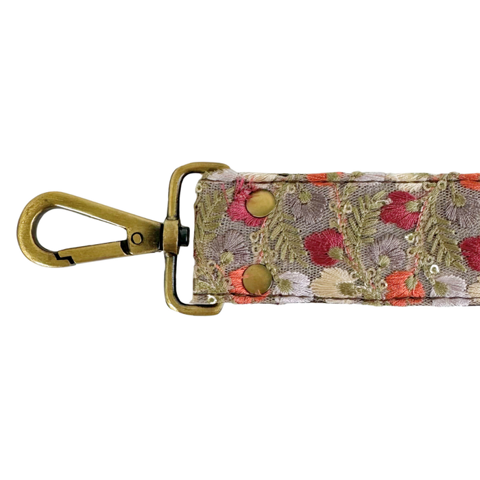 Mooie handgemaakte veelzijdige en verstelbare straps. Te gebruiken voor je tas, smartphone of aan je camera. De embroidery straps zijn (zoals de naam al zegt:-)) prachtig geborduurd van zijden en katoen. Sommige straps zijn afgewerkt met pailletjes. De achterkant van de strap is gemaakt van soepel leder in bijpassende tint. Een prachtige bagstrap voor bij je mooie tas! Afmeting: de lengte is verstelbaar tot +/- 120 cm, de breedte is 5 cm Achterkant: leder Bagstrap - Smartphonestrap - Camerastrap