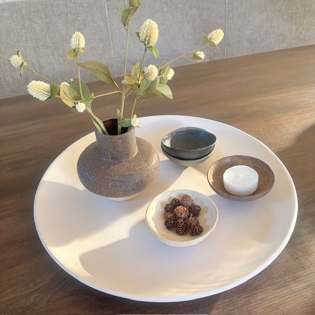 Het Onderbord Nussa in een mooie crème kleur vormt de perfecte basis voor jouw decoratieve accenten. Of je nu kaarsen, een mooie vaas of je favoriete servies erop zet, alles staat hier elegant op. Met zijn ruime afmeting van 4 x 44 x 44 cm biedt het de ideale ruimte om je mooiste decoraties neer te zetten,