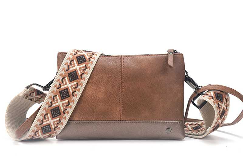 Je kunt dit tasje op twee manieren dragen. Zo kun je het tasje als schoudertas of crossbody tasje gebruiken door de verwisselbare, bijgeleverde schouderbanden.