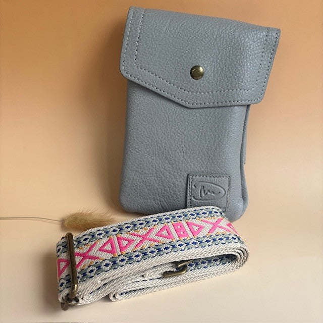 Marken is een stylisch telefoontasje van fijn formaat om overal mee naar toe te nemen. Dit telefoontasje bestaat uit een vak waar iedere soort mobiele telefoon goed in past. Het hoofdvak wordt afgesloten door een envelopflap met magneetsluiting. De geweven schouderband / bag strap geeft dit stylische tasje een unieke look. Aan de achterkant van het tasje zit een klein vakje afgesloten met rits. De perfecte manier om kleine kostbaarheden veilig te bewaren bewaren.