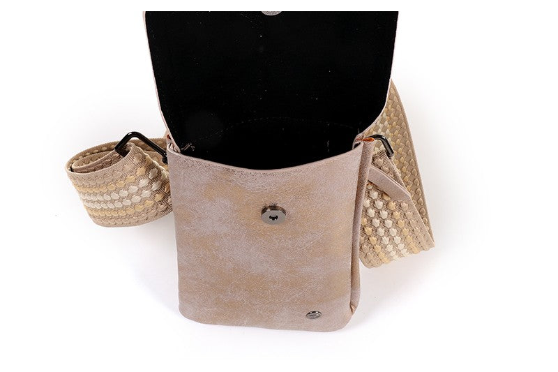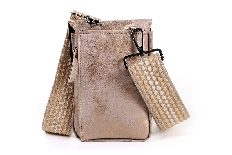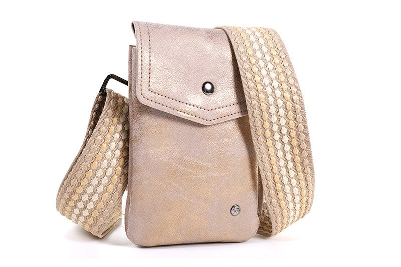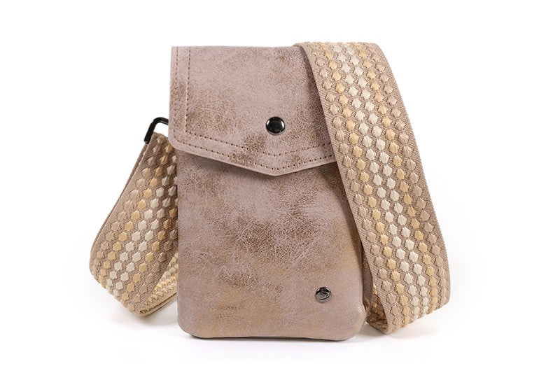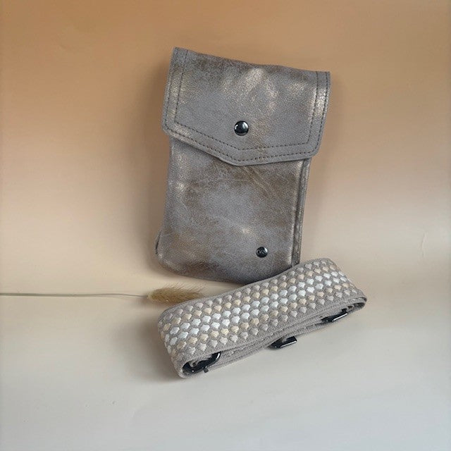 Soest is een stylisch telefoontasje van fijn formaat om overal mee naar toe te nemen. Dit telefoontasje bestaat uit een vak waar iedere soort mobiele telefoon goed in past. Het hoofdvak wordt afgesloten door een envelopflap met magneetsluiting. De geweven schouderband / bag strap geeft dit stylische tasje een unieke look. Aan de achterkant van het tasje zit een klein vakje afgesloten met rits. De perfecte manier om kleine kostbaarheden veilig te bewaren bewaren.