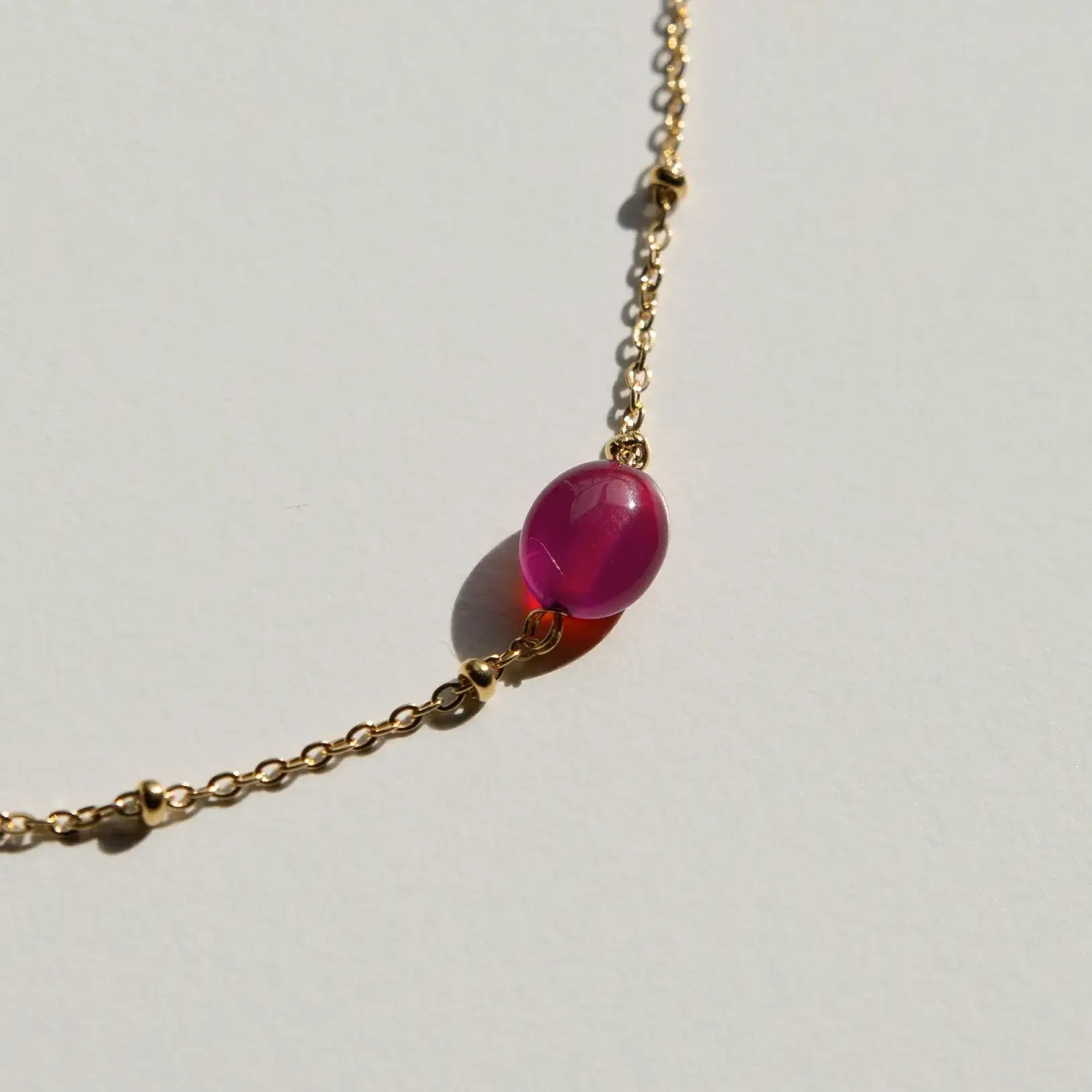 Geef je style en dromen een extra boost met deze stainless steel armband met een dieprode glazen kraal. Een subtiele reminder om groots te dromen!