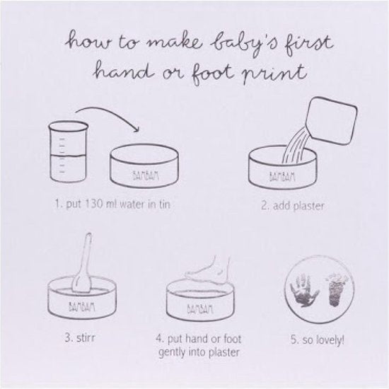 In de verpakking vind je kant-en-klaar gips en een duidelijke gebruiksaanwijzing, zodat je meteen aan de slag kunt. Een bijzonder en origineel kraamcadeau!