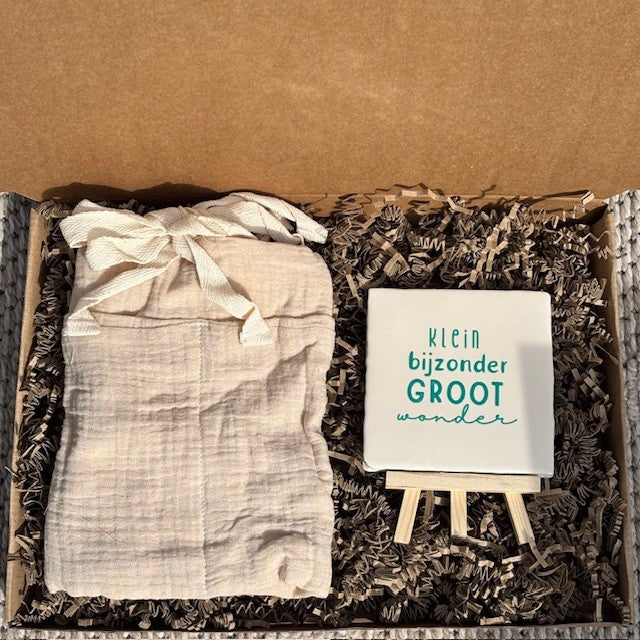 De komst van een kleintje is altijd een wonder, klein maar groots tegelijk. Met dit liefdevolle brievenbuspakket feliciteer je de kersverse ouders of aanstaande mama op een originele en blijvende manier.