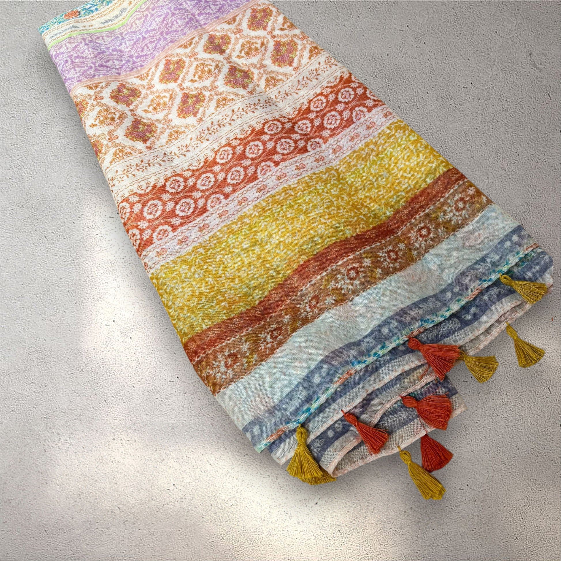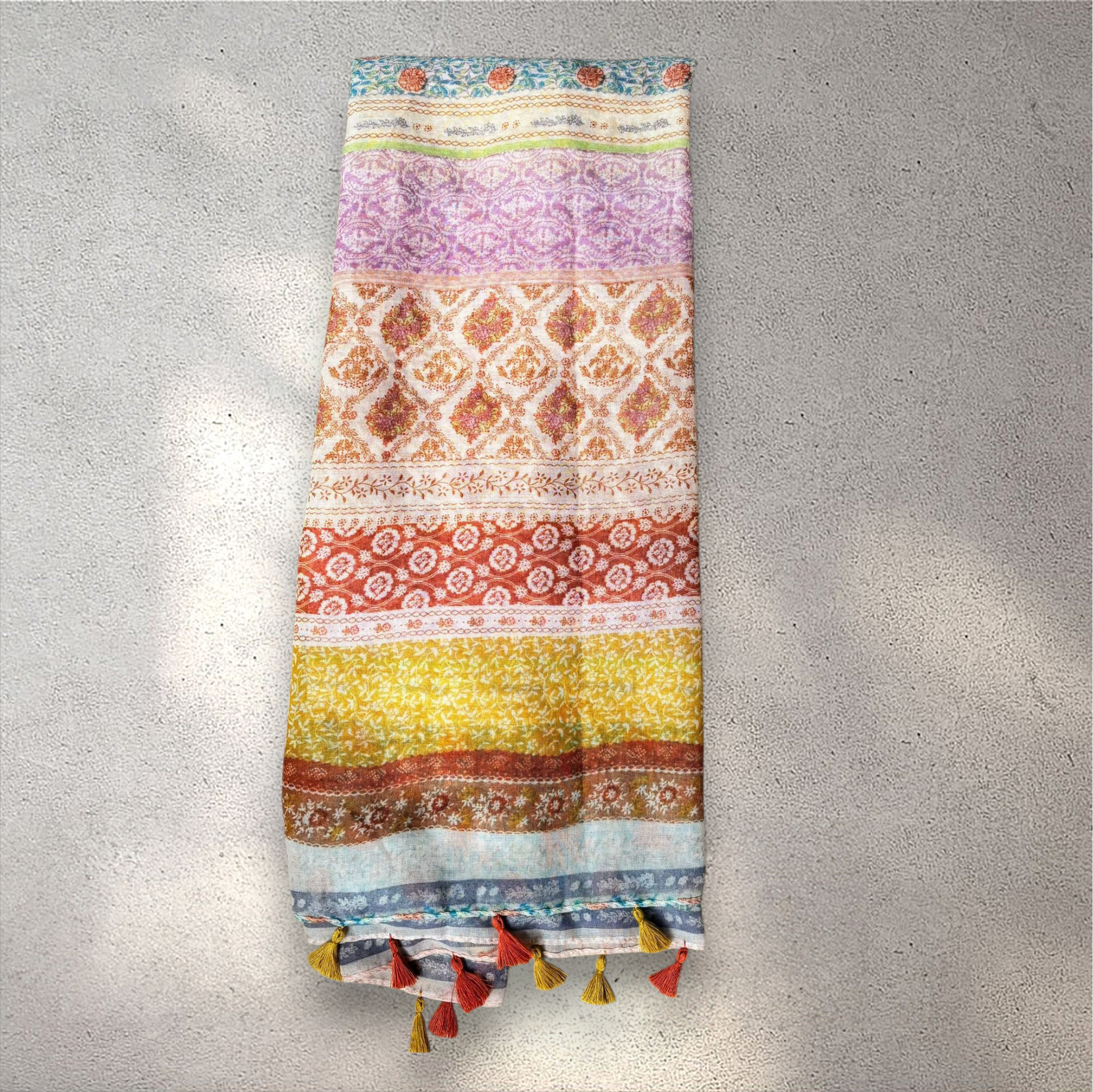 De vrolijke kleuren en franjes zorgen voor een echte boho chic look, terwijl het soepele polyester materiaal licht en comfortabel aanvoelt. Een veelzijdige must-have accessoire die je moeiteloos combineert met zowel casual als elegante outfits.