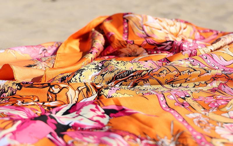 Deze fijne vierkante sjaal Linan is een heerlijke zachte sjaal. De unieke print geeft de sjaal een speelse en klassieke look aan je outfit. Het hoogwaardige materiaal is prachtig en glanzend, zoals zijde. Perfect voor de aanstaande zomer periode! Ontdek de eindeloze mogelijkheden van deze veelzijdige sjaal. Draag de Lilan om je nek, als haarband of aan je tas. De damessjaal Linan is onmisbaar in je garderobe!