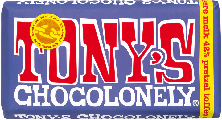 Pretzel? Lekker. Toffee? Ook lekker. En samen in donkere melkchocolade met 42% cacao zijn ze nóg lekkerder! Een knapperig zoutje van de pretzel en een zoete crunch van de toffee: met deze paarse jongen hebben we ’r weer een nieuwe favo bij!