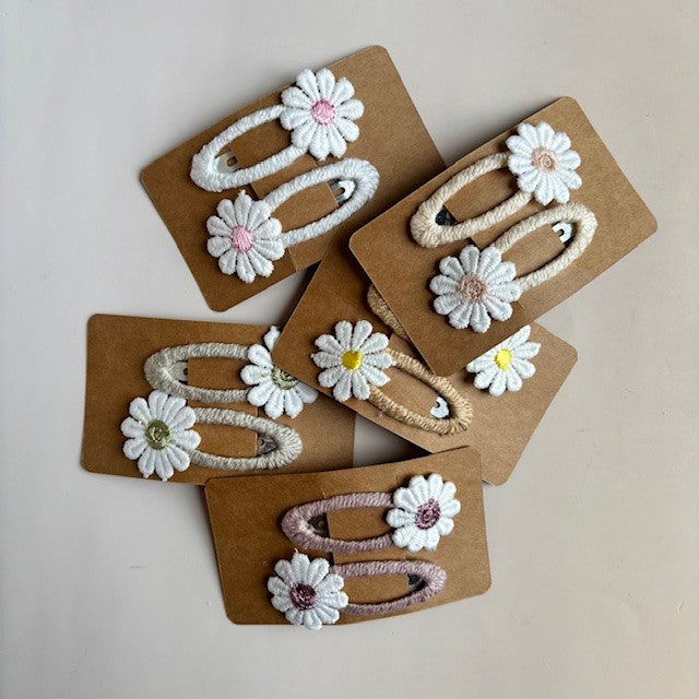 De clipjes zijn zacht, veilig en comfortabel voor de gevoelige haartjes van je baby. Dankzij het stevige design blijven ze goed zitten, terwijl de vrolijke bloemen een speelse en stijlvolle touch toevoegen. Ideaal voor dagelijks gebruik, speciale gelegenheden of om te combineren met andere accessoires.