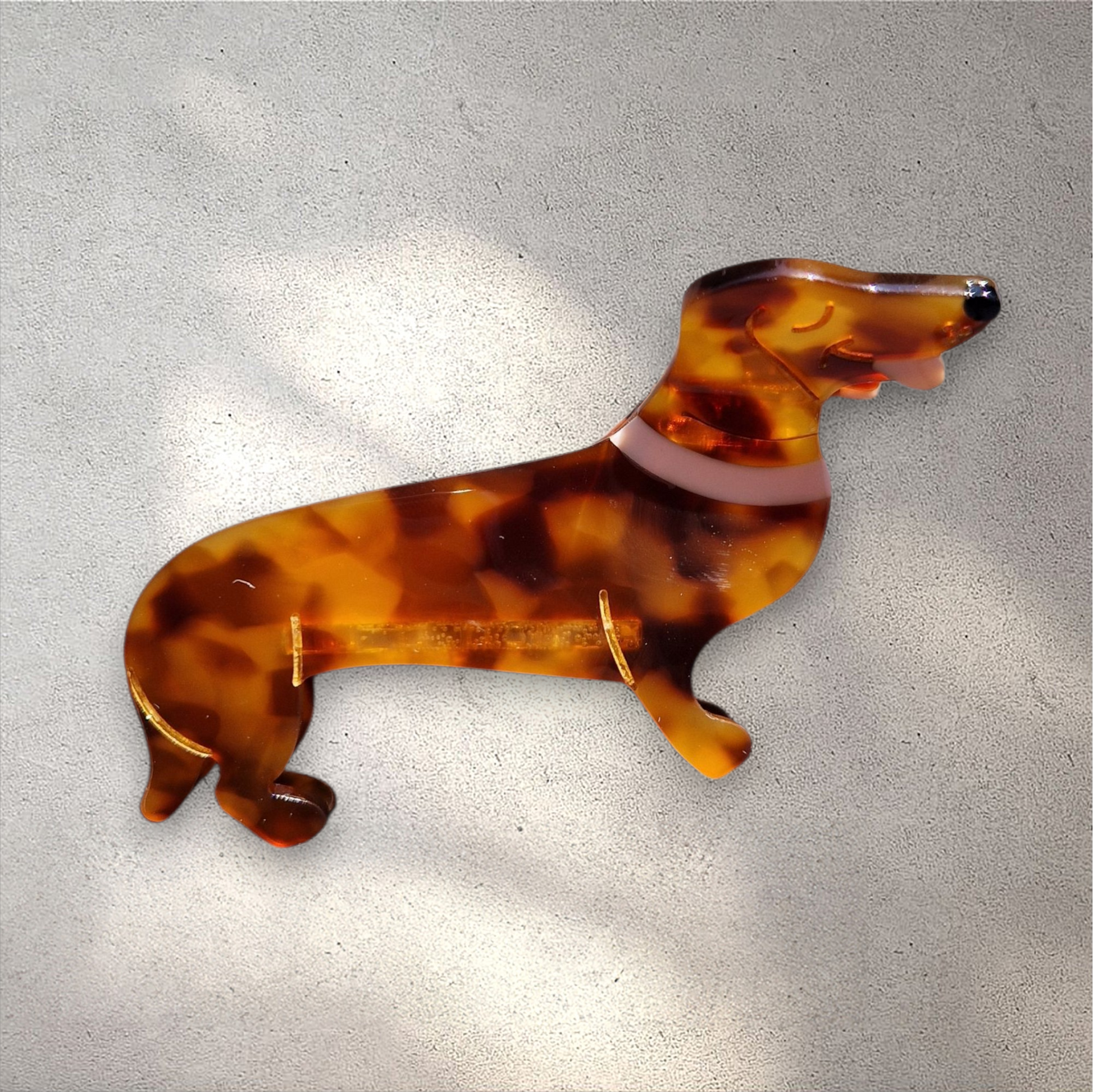 Dan mag deze klem niet ontbreken in jouw la. Deze leuke Teckel haarklem met de afmeting 8,3 cm houdt hij je haar stevig op zijn plek, en het geeft je een look met een speels en trendy twist. Of je nu naar werk gaat, een dagje uit bent of gewoon je liefde voor teckels wilt laten zien, deze haarklem is hét accessoire van het moment.