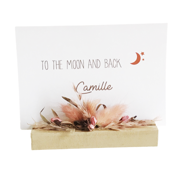 Kaartenhouder 12cm met droogbloemen en met gleufje voor naamkaartje of foto