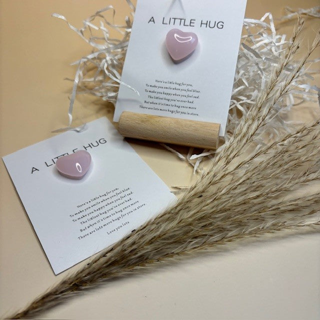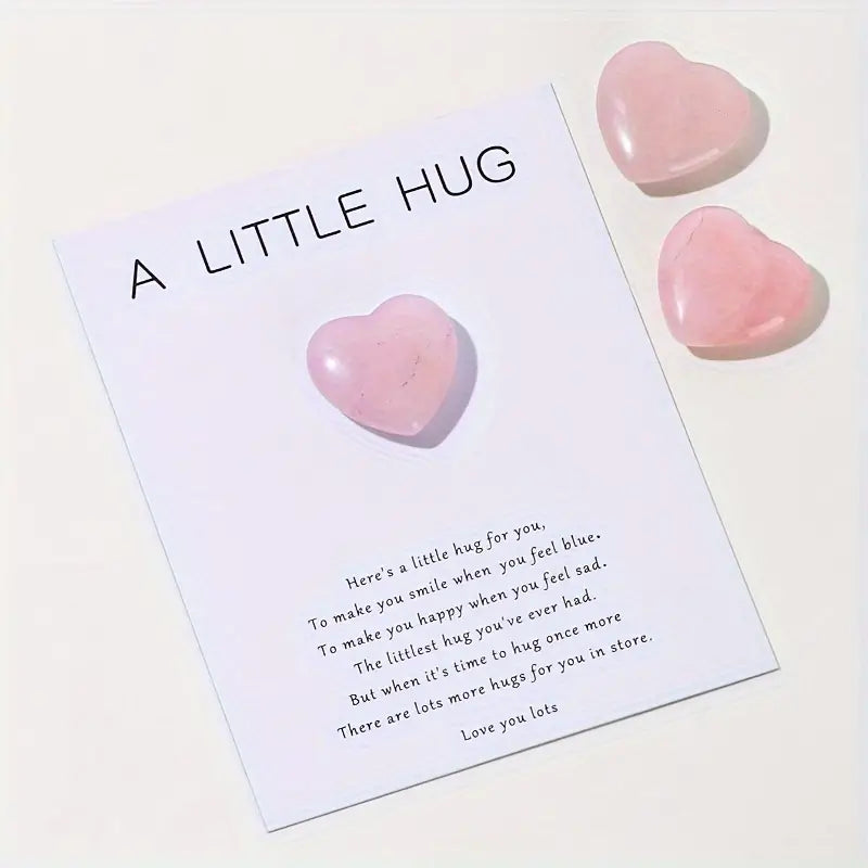 Deze prachtige kaart bevat een natuursteen hart van rozenkwarts, perfect voor het versturen van een liefdevolle en bemoedigende boodschap. Het hart is gemaakt van authentiek rozenkwarts, een steen die vaak wordt geassocieerd met liefde, warmte en heling, en heeft een zachte, lichte roze tint die kalmeert en troost biedt.